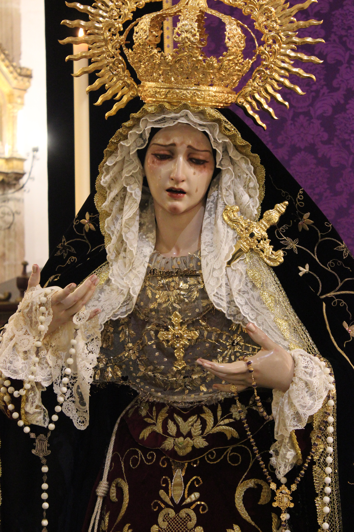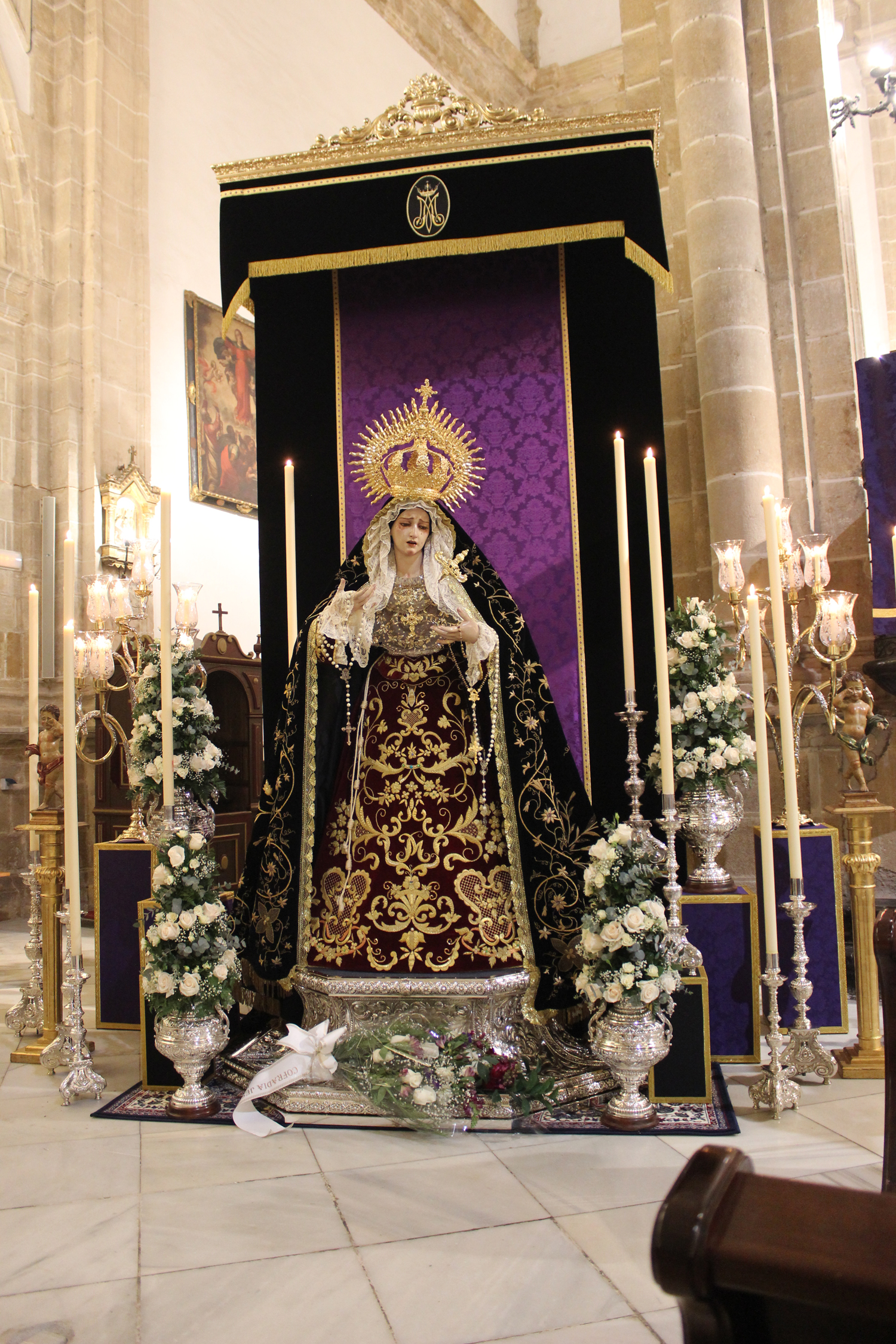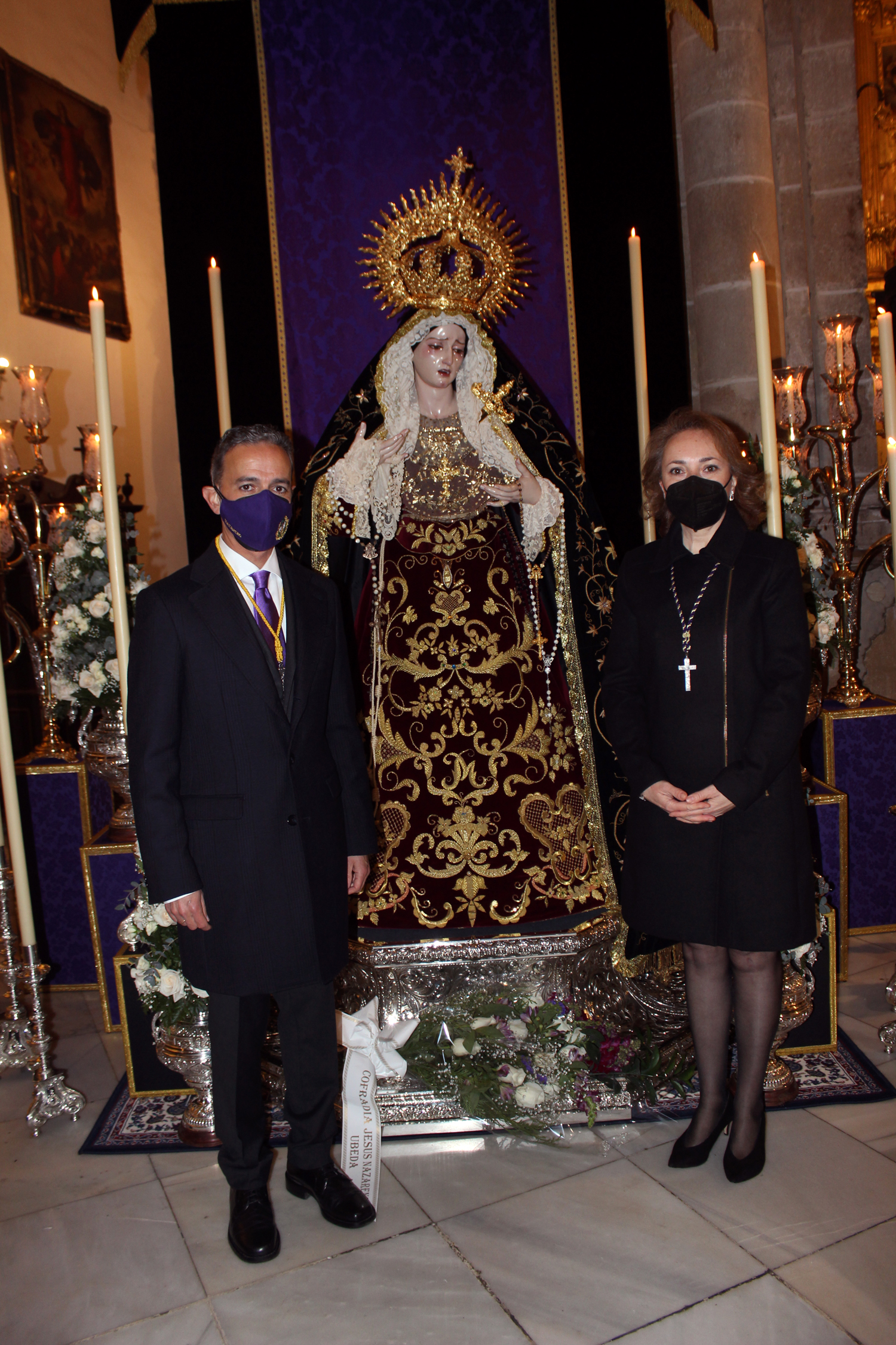 María Santísima del Mayor Dolor y Traspaso, bellísima imagen obra del imaginero Israel Cornejo, lucía la saya burdeos bordada en oro por las madres dominicas de Jaén y el antiguo manto procesional de nuestra Madre, la Santísima Virgen de los Dolores y numerosas piezas de orfebrería de su paso adornaban el altar de cultos realizado para la ocasión.