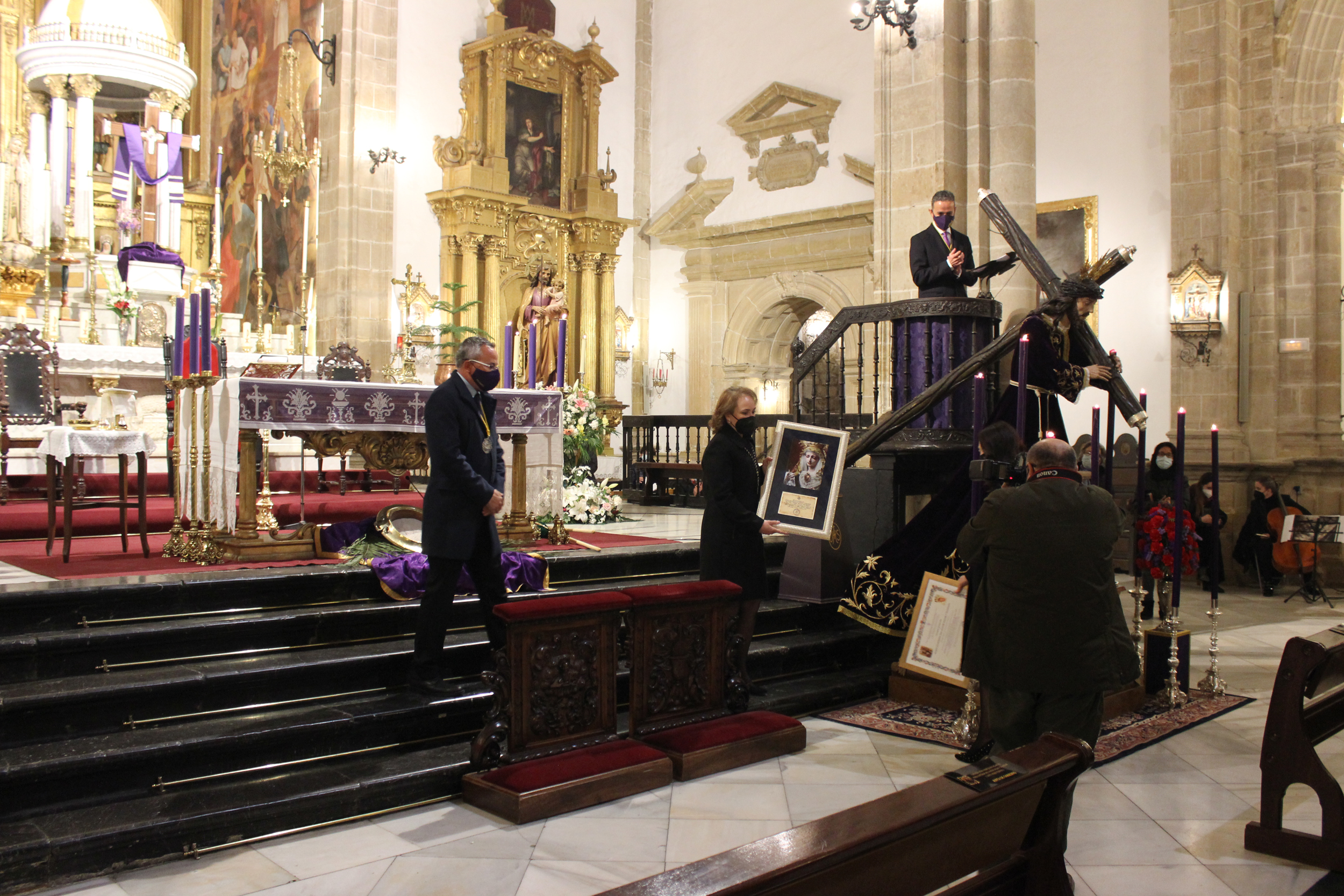 Nuestra Cofradía regaló a la Virgen en el momento de su bendición, un rosario de nácar y un ramo de flores y al finalizar la Eucaristía nuestra Hermana Mayor hizo entrega de un pergamino conmemorativo al Hermano Mayor de la corporación nazarena de Villacarrillo, que a su vez nos distinguió con un cuadro de la imagen recién bendecida. Desde aquí, agradecemos enormemente a la Cofradía de Nuestro Padre Jesús Nazareno de Villacarrillo su atención y cariño así como el haber invitado a esta Muy Antigua e Ilustre Cofradía a participar de un modo tan especial de un momento histórico e inolvidable.